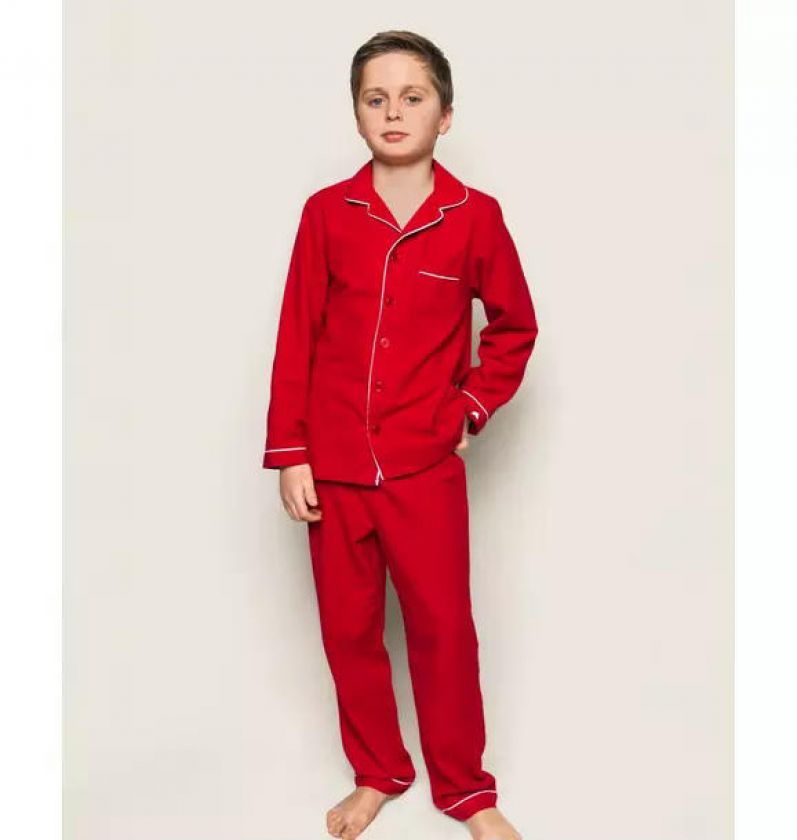 Our flannel has unmatched softness and perfect for year-round comfort. This classic pajama set is accented with white piping and finished with pearl buttons.