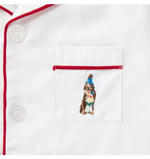 A timeless PJ silhouette we love from our friends at Petite Plume. Made extra special with an embroidered dog icon inspired by our Gray Malin x Janie and Jack collection.