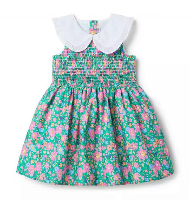 Made with love. Made with Liberty Fabric. This perennial pick gets a dose of British charm with an iconic floral from Liberty London. A ruffle-trimmed collar and smocking make it even more special.