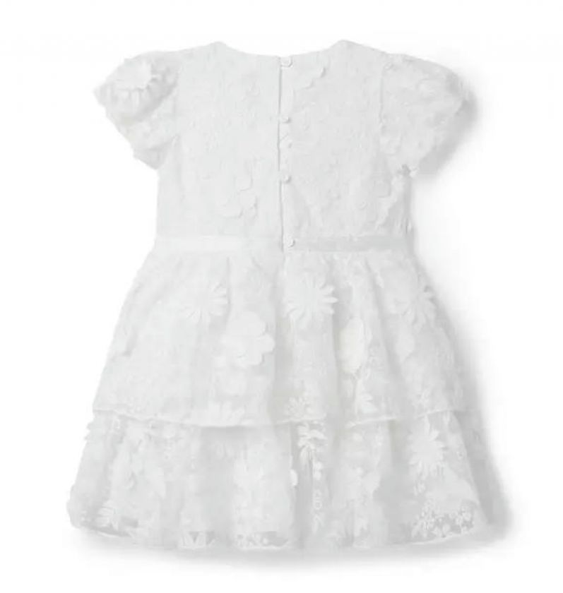 RSVP yes to this floral dress. It’s perfect for special moments, thanks to puff sleeves, tiered ruffles and embroidered flowers, of course.