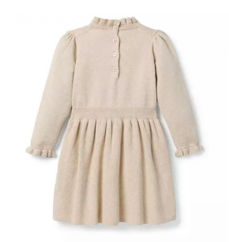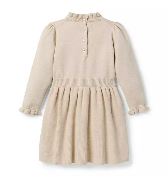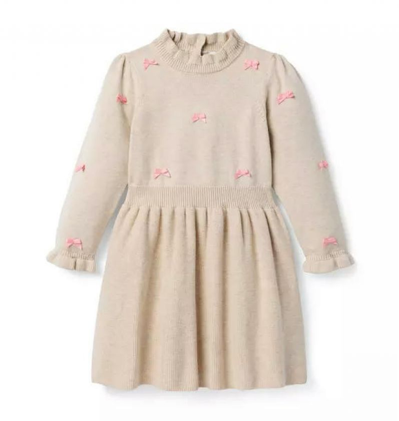 A favorite for the season—just add bows. Featuring satin bow appliques, our cozy sweater dress is finished with ruffle details and a ribbed skirt.