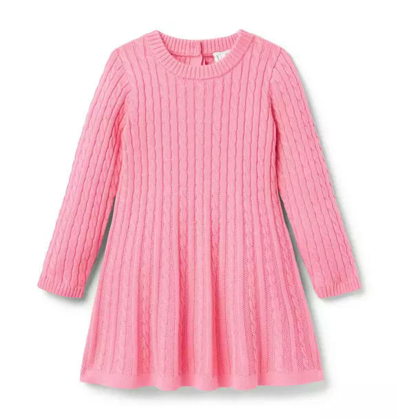 A sweater weather favorite in cozy cable knit. Our dress is finished with ribbed details and a twirl-worthy flared skirt.