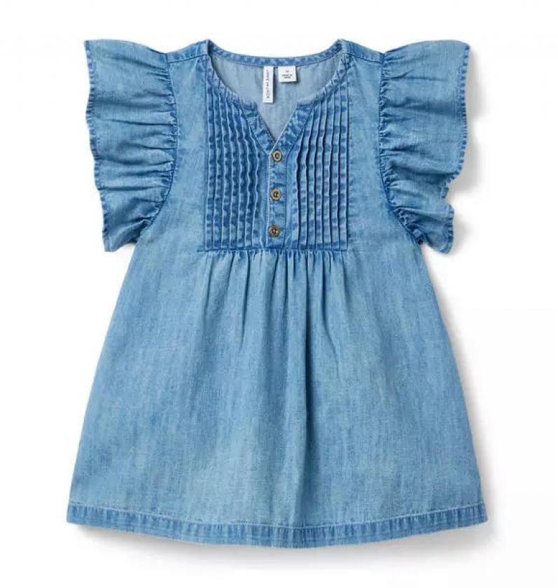 Classic chambray to style your way. Our breezy A-line dress features ruffle sleeves, pintuck details and shirring at the skirt.