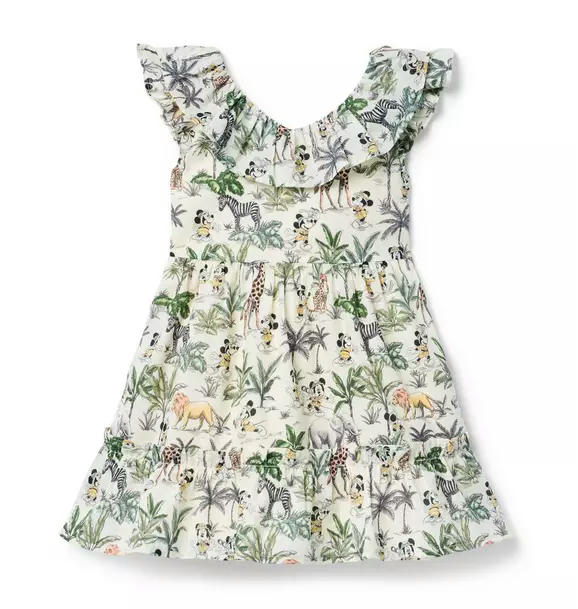 Explore your style with Disney’s most iconic characters. Our dress features an allover Mickey Mouse and Minnie Mouse safari print, plus ruffle details for extra frills.