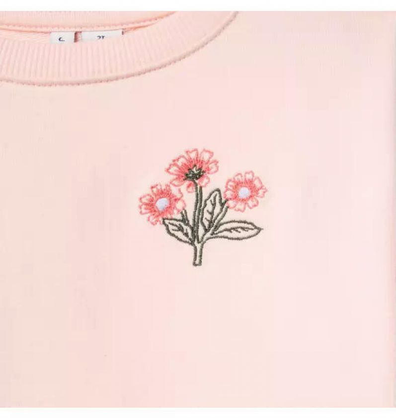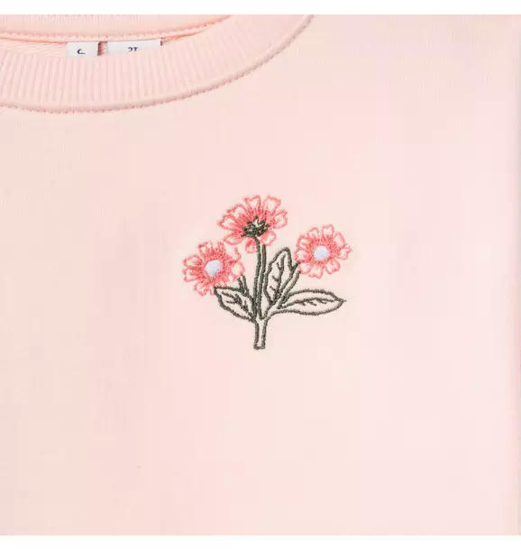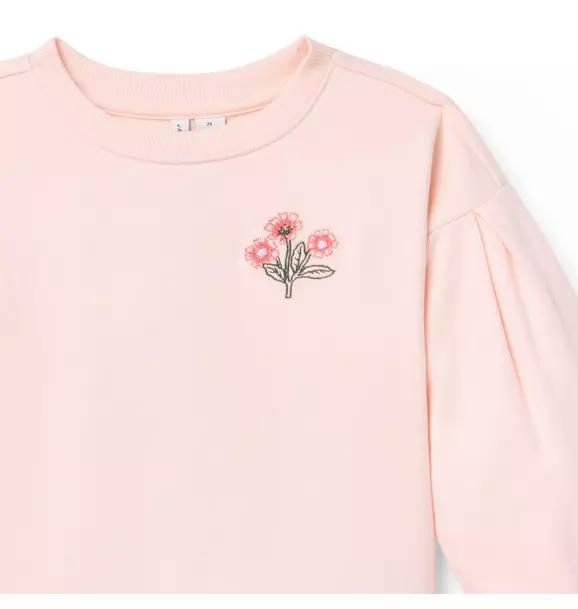 Fresh florals and cozy French terry make this dress a wear-everwhere favorite. With an embroidered flower at the chest, just because.