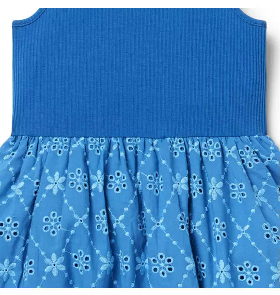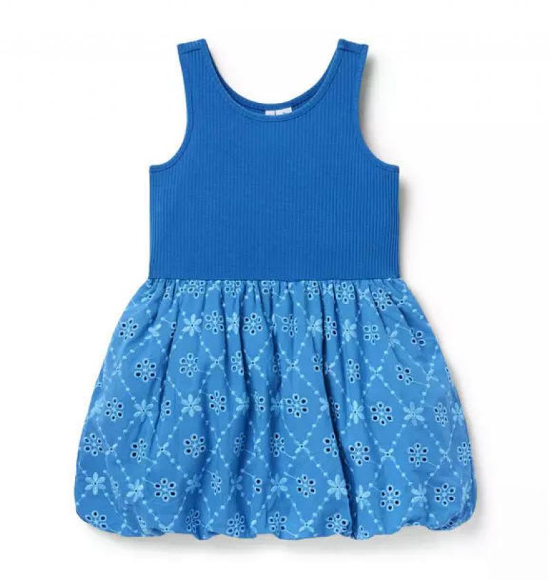 A trendsetting dress in eye-catching eyelet. Featuring a bubble hem silhouette and a ribbed bodice, it's an instant wardrobe favorite.