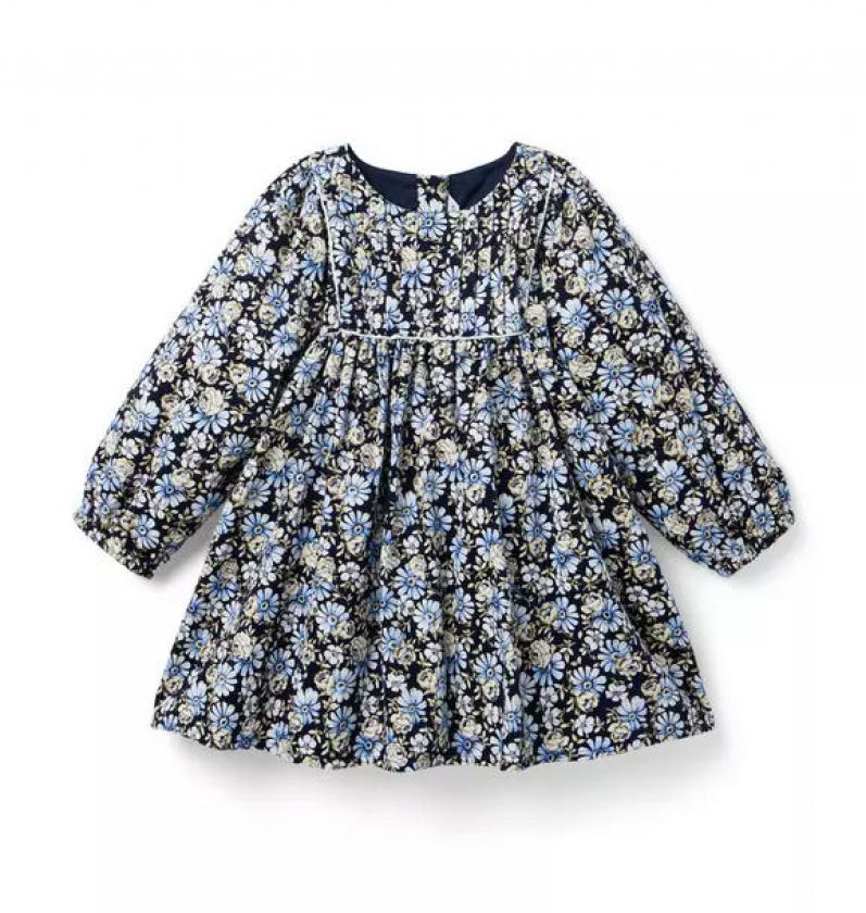Soft corduroy and our favorite florals for this must-have dress. Designed with pleated details and piped trim too.