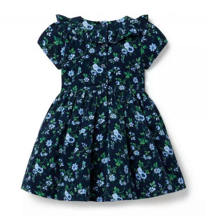 Our floral dress gets the cozy treatment in allover corduroy. Featuring details to love, from the ruffles to the grosgrain ribbon at the collar.