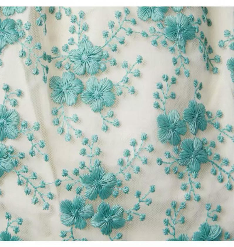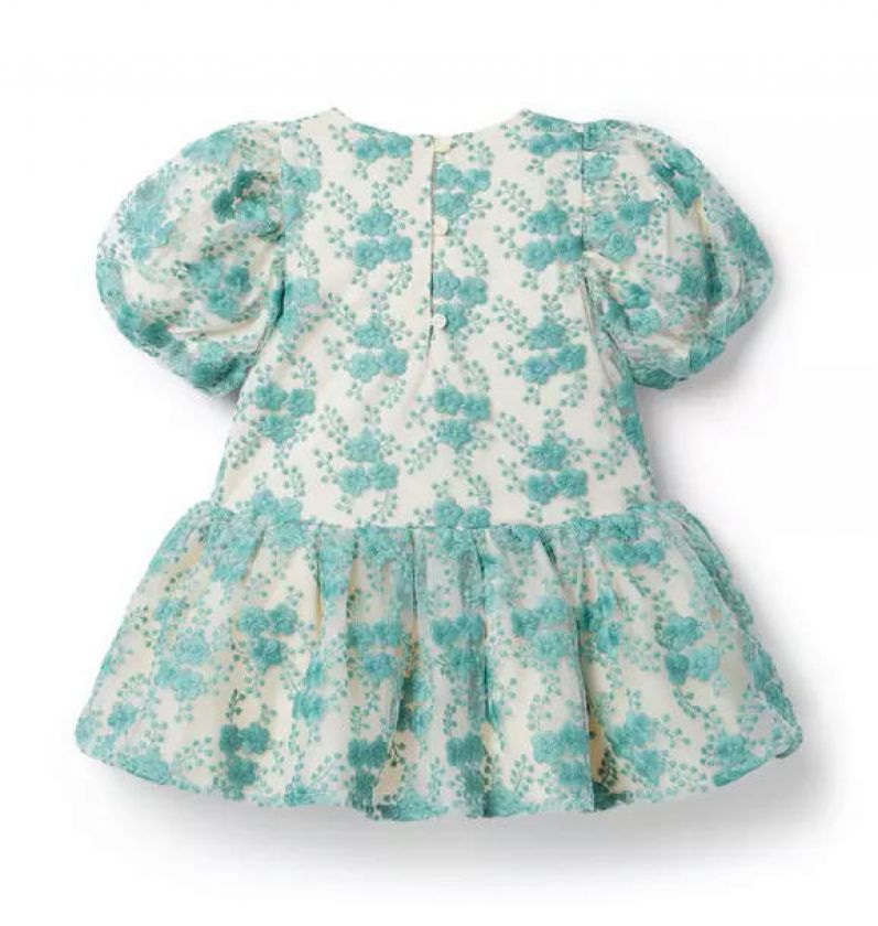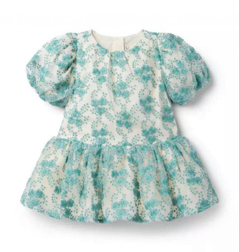 A tulle dress that blossoms no matter the celebration. Detailed with a special arrangement of embroidered florals, puff sleeves and a trending dropwaist silhouette.