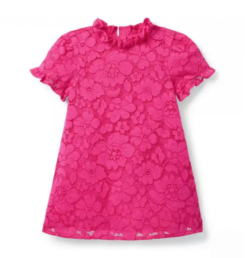 Lace, florals and ruffles too—our head-turning dress has it all. Designed in the perfect shade of pink.