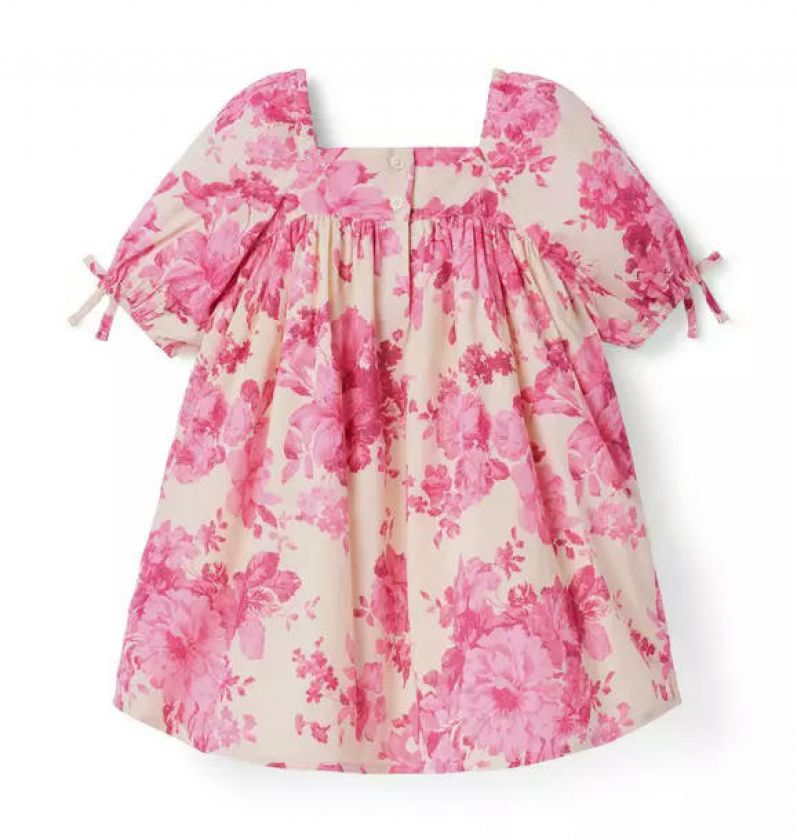 Dressed up or down, this floral favorite is always in fashion. In pure cotton with puff sleeves, a square neck and bow details too.