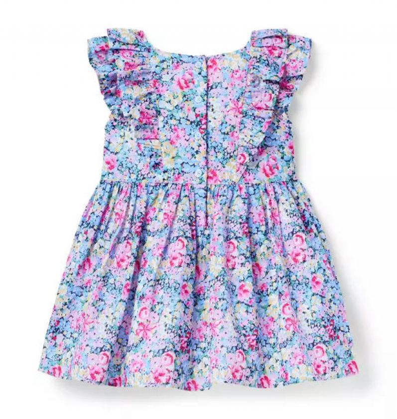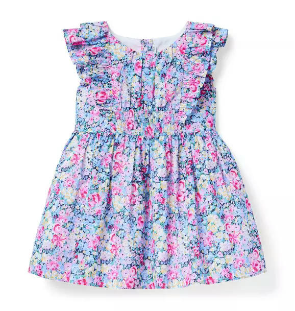 Ruffles and florals? Two of our favorite things. This pure cotton dress features both, plus a smocked detail at the bodice.