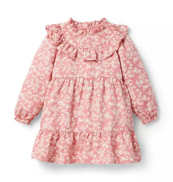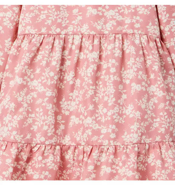 Style blooms, all season long. Our floral dress in pure cotton twill features a tiered silhouette and ruffle details too.