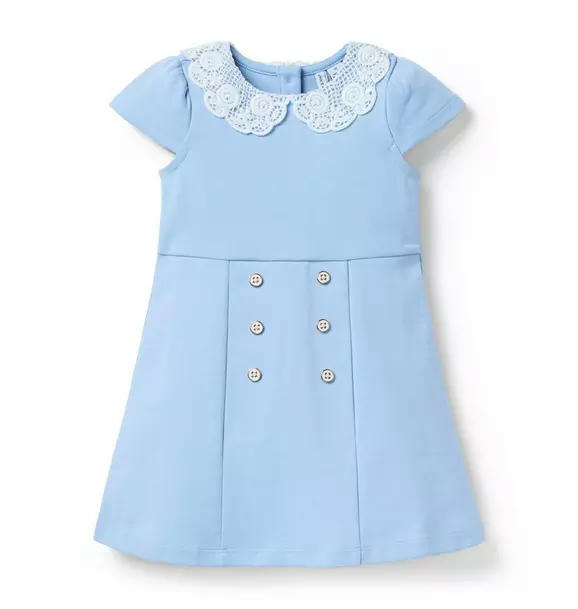 Our signature ponte dress is a style classic. Featuring a lace collar, cap sleeves and button details too.