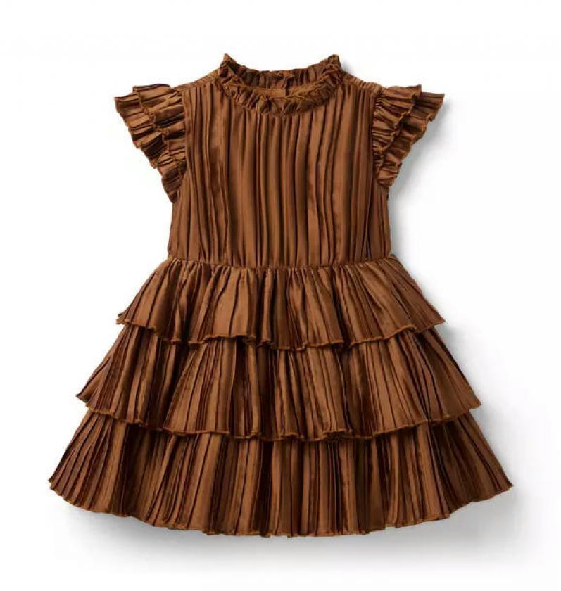 A dress with all the details to love? Pleats and thank you. Featuring a tiered silhouette and ruffle details too.