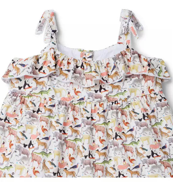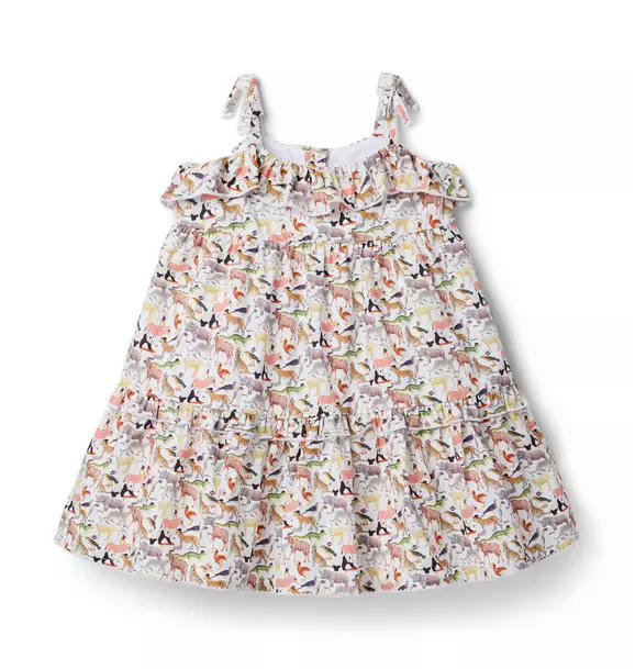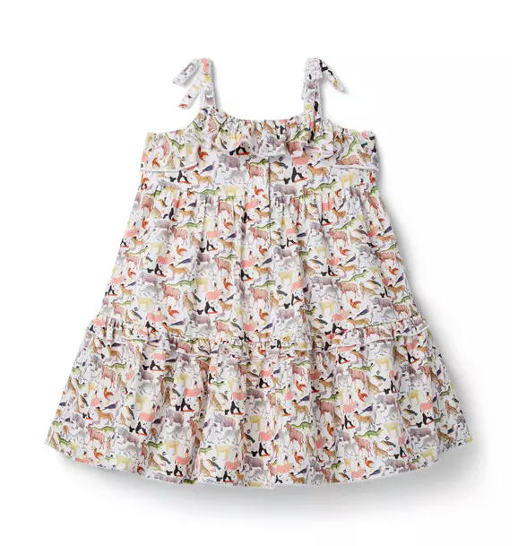 Made with love. Made with Liberty Fabric. This head-turning dress gets a dose of British charm with an eclectic animal print from Liberty London. Bow straps, picot trim and a tiered hem make it even more special.