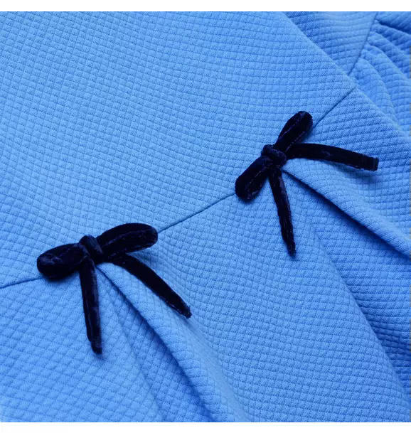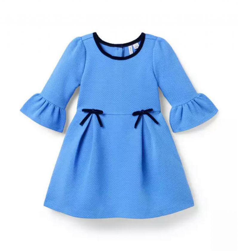 Bows make any occasion extra special—and so does our quilted dress. Designed with velvet bows and trim and ruffle cuffs too.