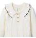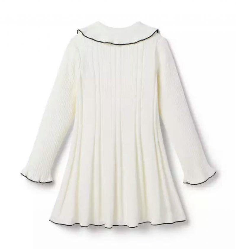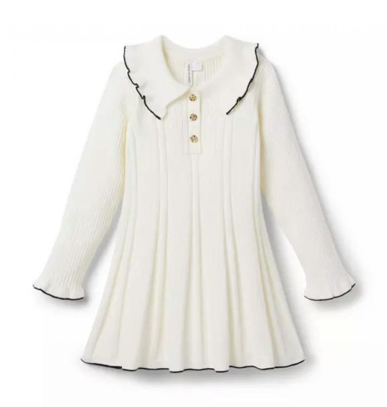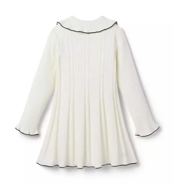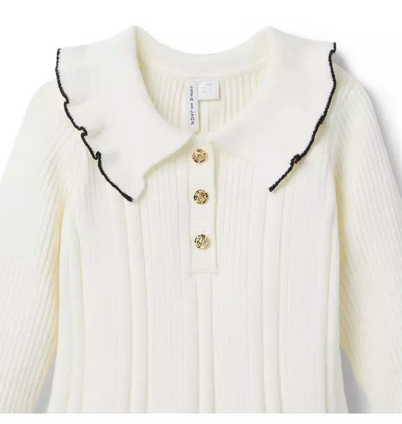 Get dressed for sweater season in this cozy ribbed favorite. Designed with contrast tipping, a ruffle edge collar and gold-tone buttons too.