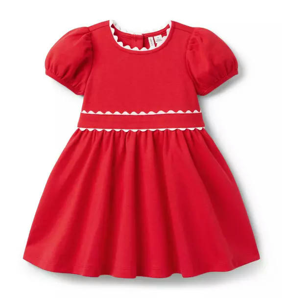 Wear-ever they go, our ponte dress never fails to impress. Designed with puff sleeves and ric rac trim for a special touch.