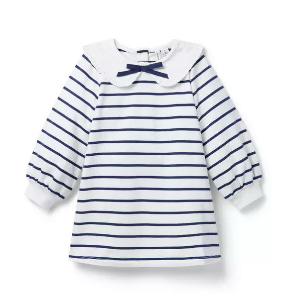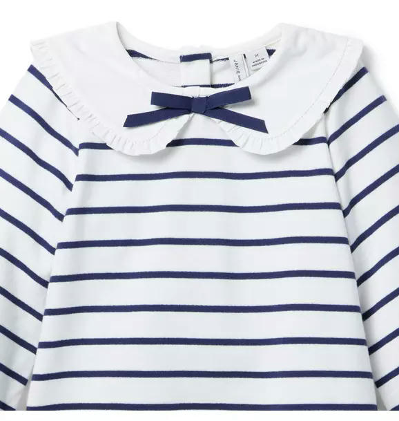 An effortless favorite that's just our stripe. Designed in pure cotton, our dress feature a ruffle-trimmed collar, bow detail and ribbed cuffs too.