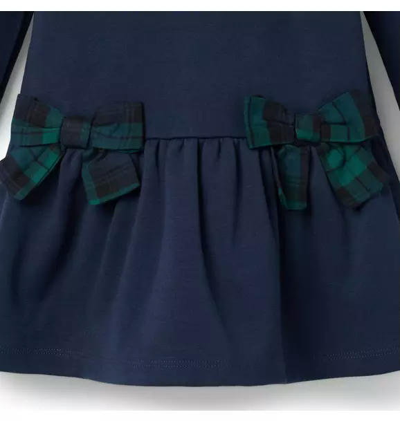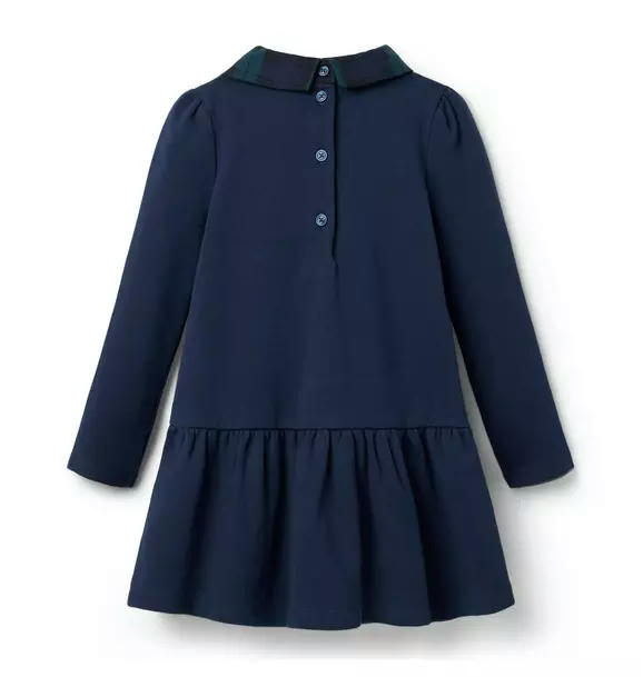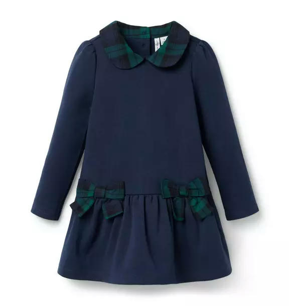 Style is in the details with our soft ponte dress. From the contrast tartan collar and bows to the dropwaist silhouette, it's a favorite to wear your way.
