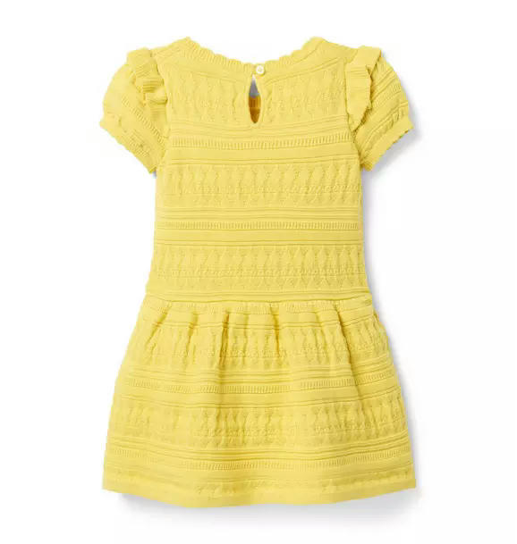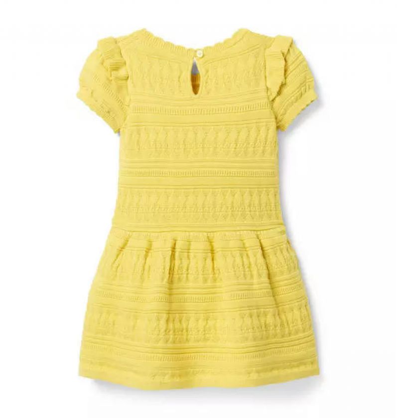 Dress for sweater weather with this soft textured knit favorite. We love the ruffle details, puff sleeves and scalloped trim.