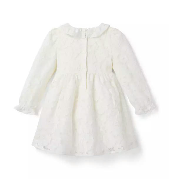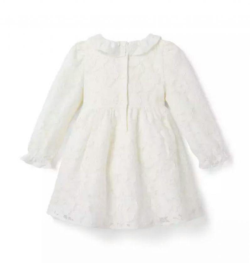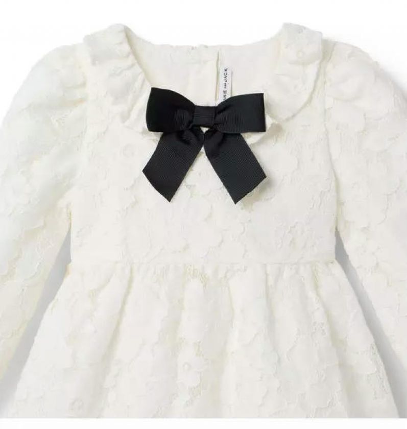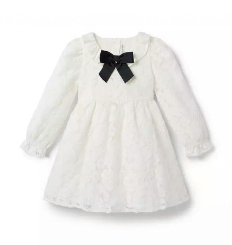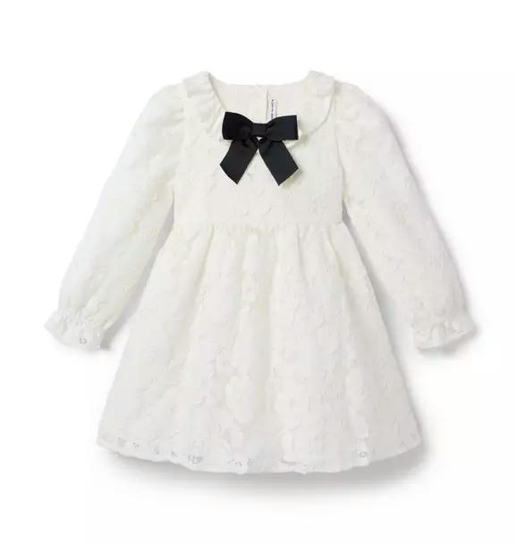 Lace always makes a statement, and this dress is no exception. Designed with an eye for the details, from the puff sleeves to the ruffle collar and the grosgrain bow too.