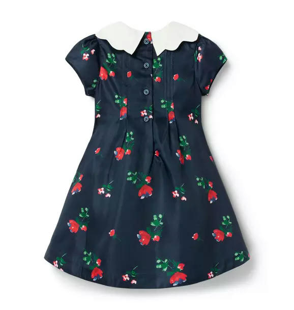 A floral dress worth celebrating. Featuring a scalloped contrast collar, pintuck pleats and a bow detail too.