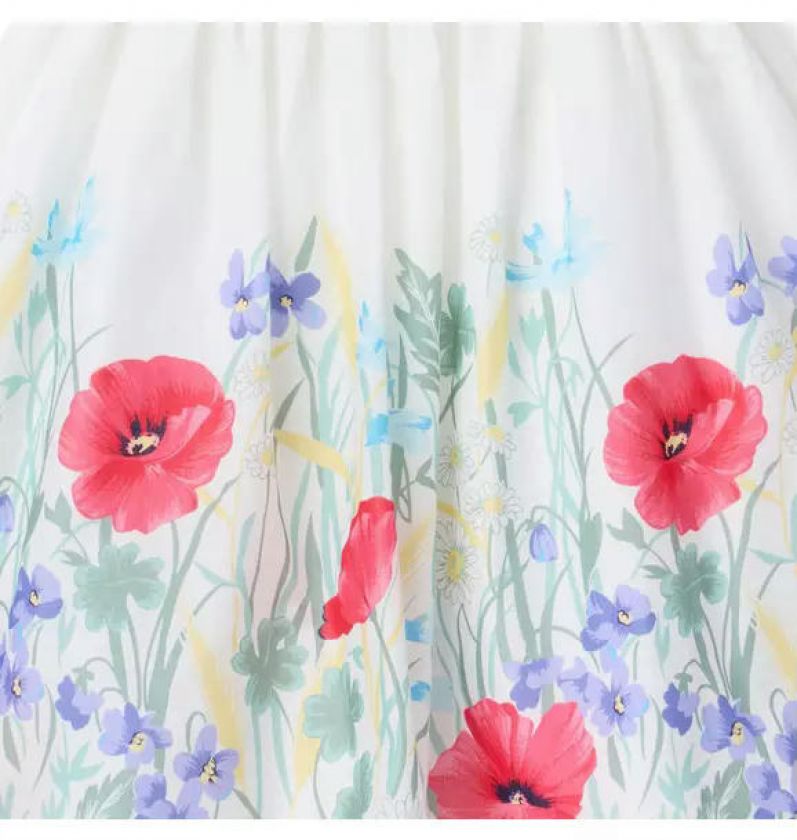 A fresh floral border print makes our dress bloom. In pure cotton with puff sleeves and an effortless empire waist.