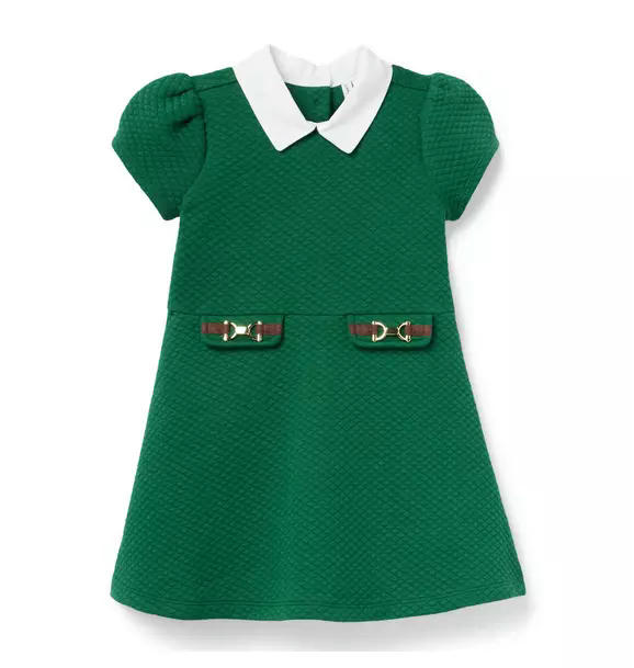 Rein in style with our equestrian-inspired dress. Designed in soft, allover quilting with bridle bit details, faux sueded trim and a contrast collar.