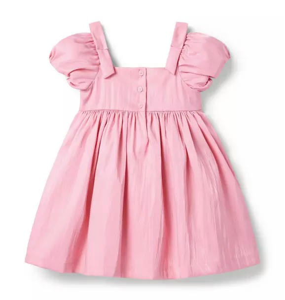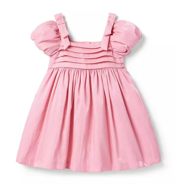 A shimmering dress with eye-catching details, from the puff sleeves to the shoulder bows and the perfect pleats too. Designed in a trendsetting empire waist silhouette.