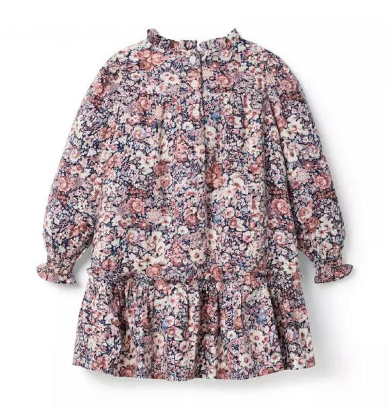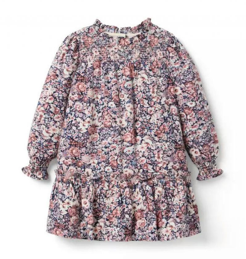 Let your style bloom with our floral dress. With ruffles at the neck, cuffs and hem, plus smocked details too, it's a favorite for any occasion.