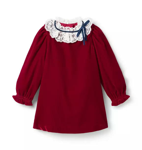 For holiday moments or just because, our velvet dress is always a standout. Featuring a delicate lace collar, a ribbon bow detail and ruffle cuffs for extra frills.