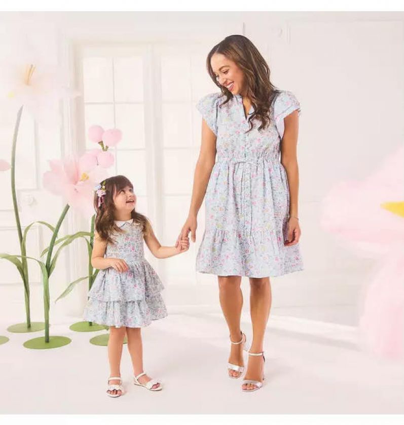 It’s a family of florals in our ruffle sleeve dress, made to match. Pintuck details and an effortless tie waist finish the look.