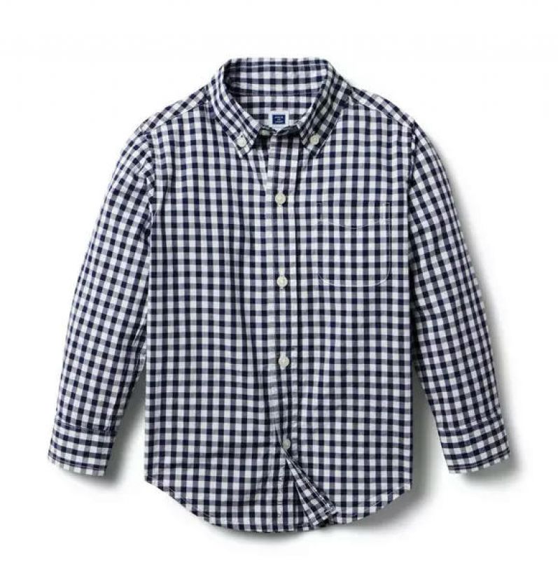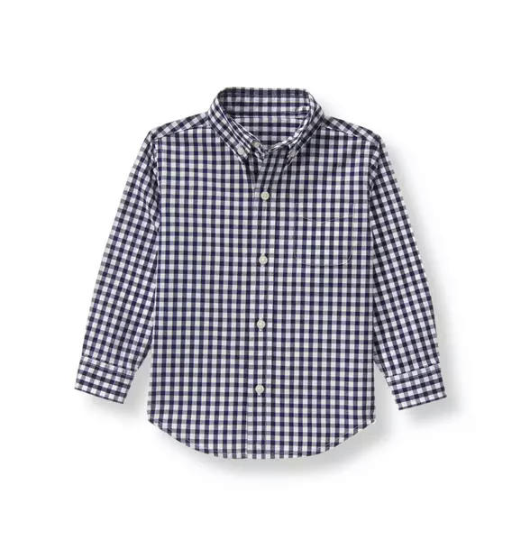 Their look is squared away with our gingham shirt in pure cotton poplin. Featuring tailored details, like collar point buttons and a chest pocket.