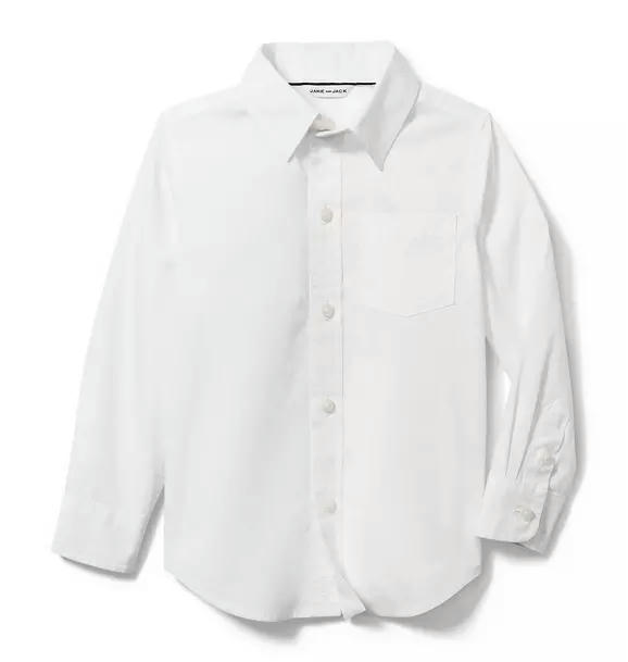 Эта рубашка из плотного поплина никогда не выйдет из моды. Модель из воздушного хлопка с пуговицами, нагрудным карманом и складкой сзади.