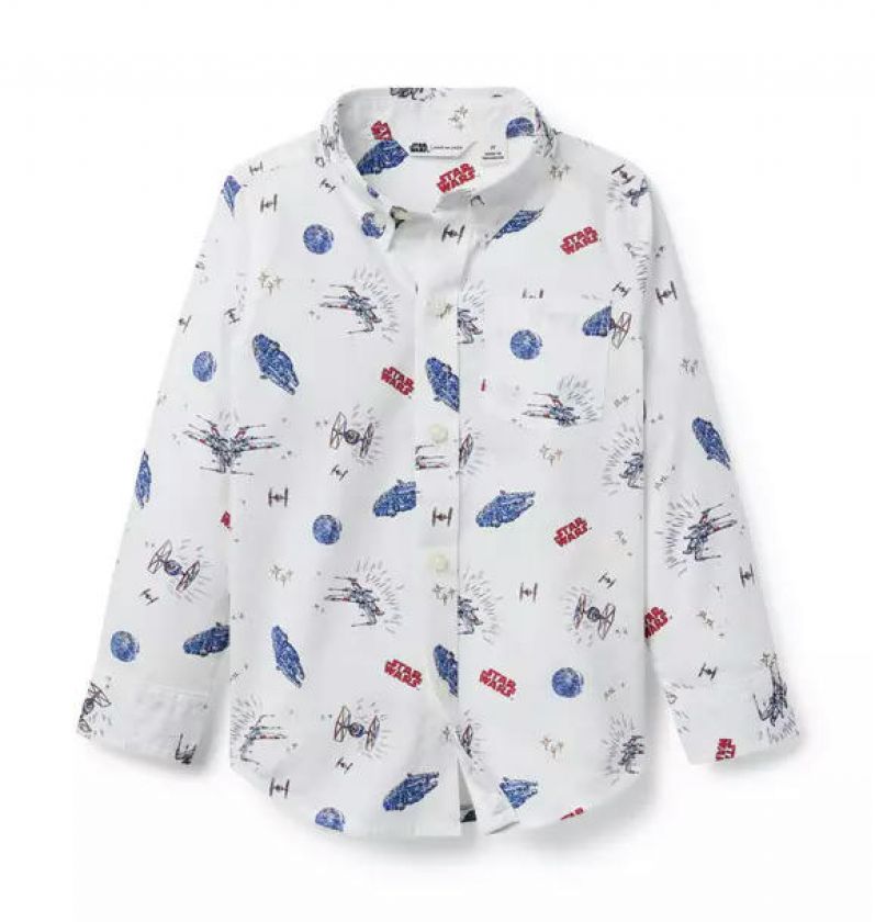 With an allover STAR WARS™ print, collar point buttons and a chest pocket too, our tailored shirt has a galaxy of details to love.