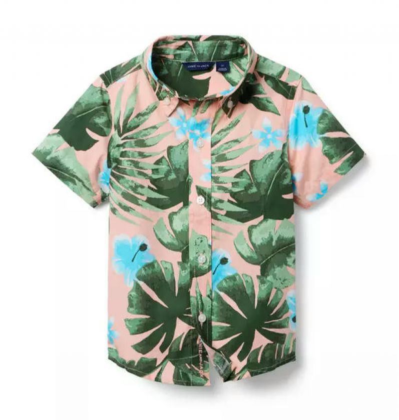 Our lightweight cotton poplin shirt is made for sunny days. With an allover palm print and tailored details like collar point buttons.