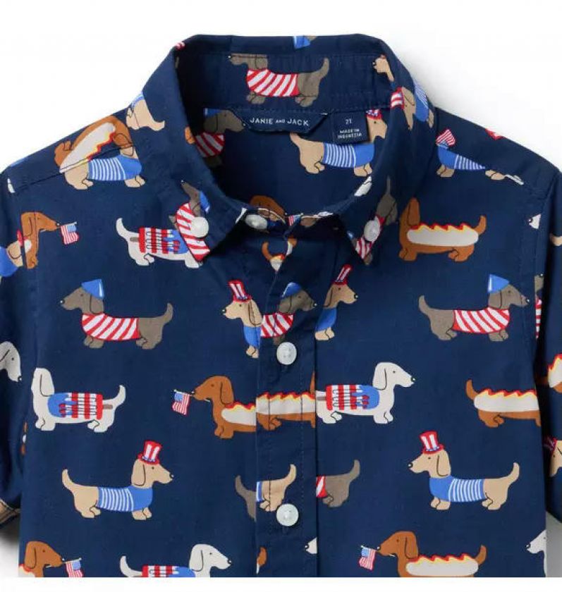 Parade your style with our crisp cotton poplin shirt. With playful patriotic pups and tailored details to love, like collar point buttons.