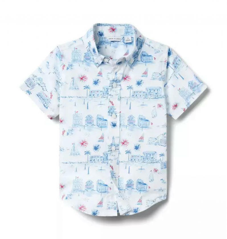 A salute to sunny day style with our crisp cotton poplin shirt. Featuring an allover Americana toile and tailored details to love, like collar point buttons.