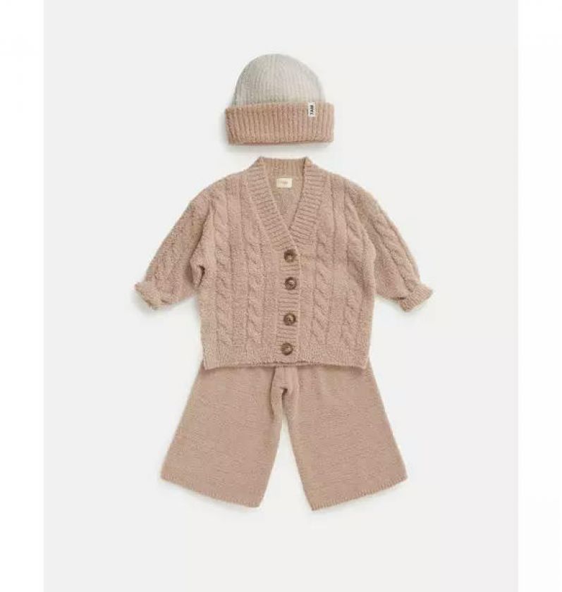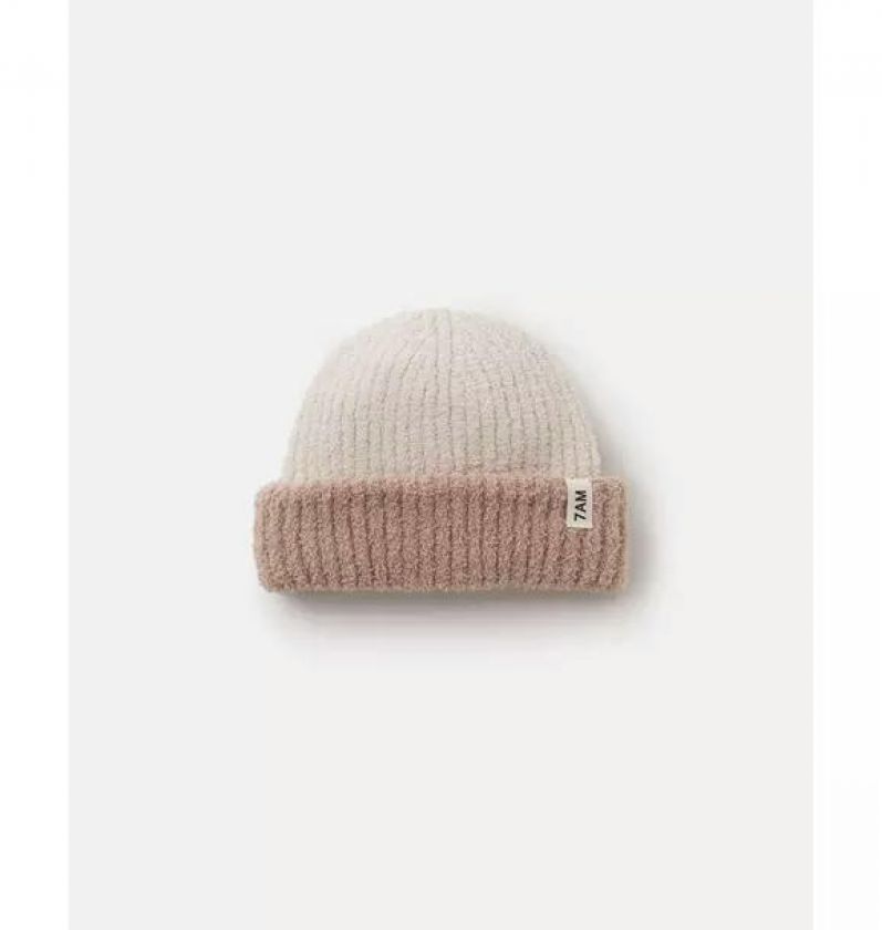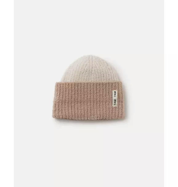 2-Tone Ribbed Beanie Fuzzy - Ecru/Pecan