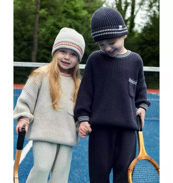 The Chunky Tennis Beanie is the perfect finishing touch — a soft, snug essential with tennis-inspired details. Crafted from ultra-soft 100% BCI cotton in a chunky ribbed knit, it features a fold-over cuff with a contrasting stripe trim for a preppy pop. Just right for chilly school runs, breezy afternoons, or après-play cuddles.
