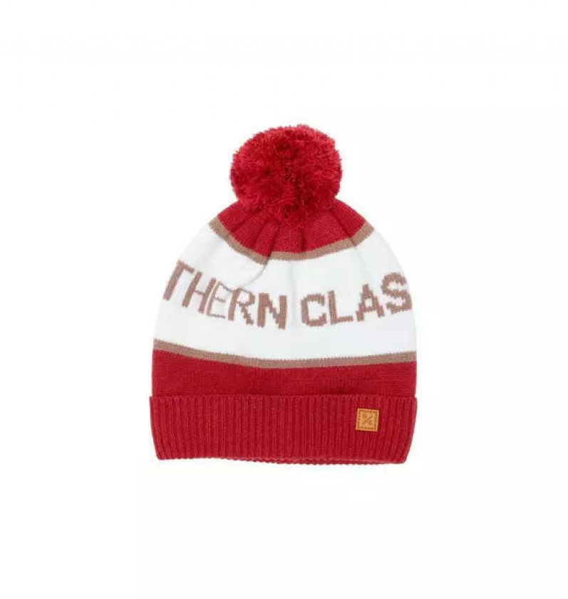 Knit Pom Hat in Heritage Red and Winter White