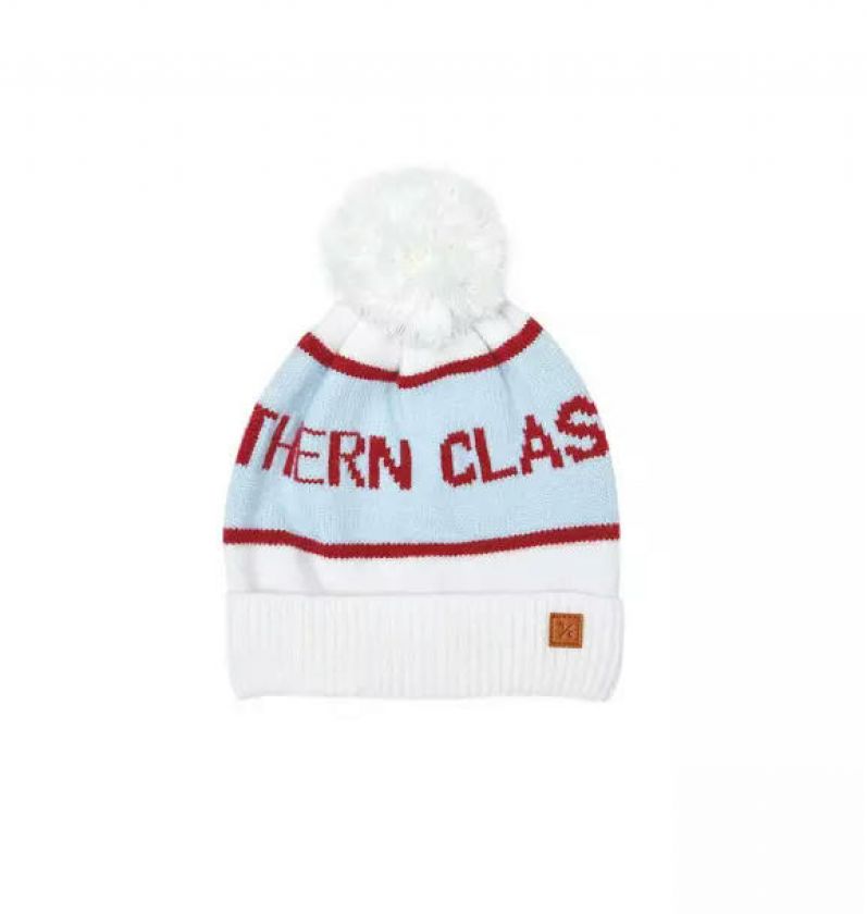 Knit Pom Hat in Winter White and Cloud Blue