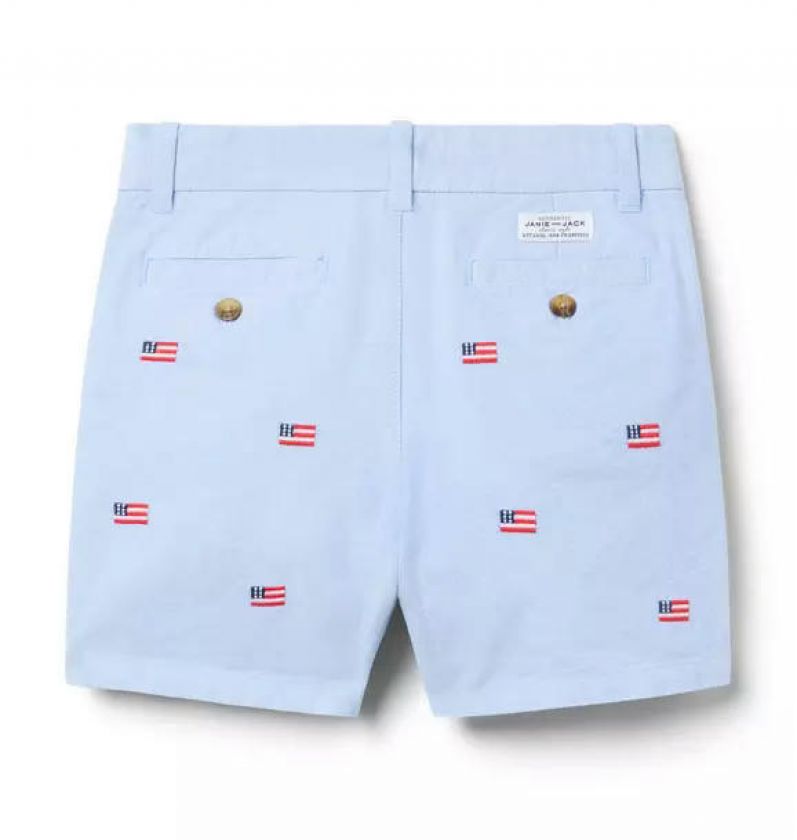 A tailored pair of oxford shorts with Americana charm. Featuring allover embroidered flags, button details and pockets for their favorite finds.