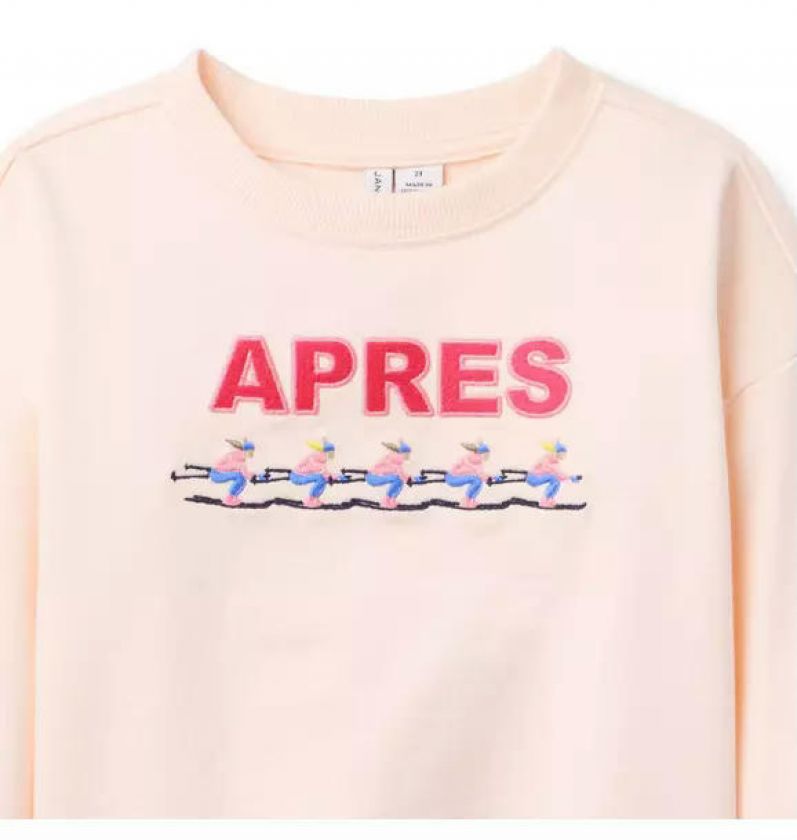 Après all day in our soft, cotton sweatshirt. Designed with embroidered ski icons and a drop shoulder silhouette.