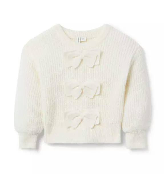Consider this sweater a forever favorite. Designed with a row of bows, it pairs perfectly with just about everything.