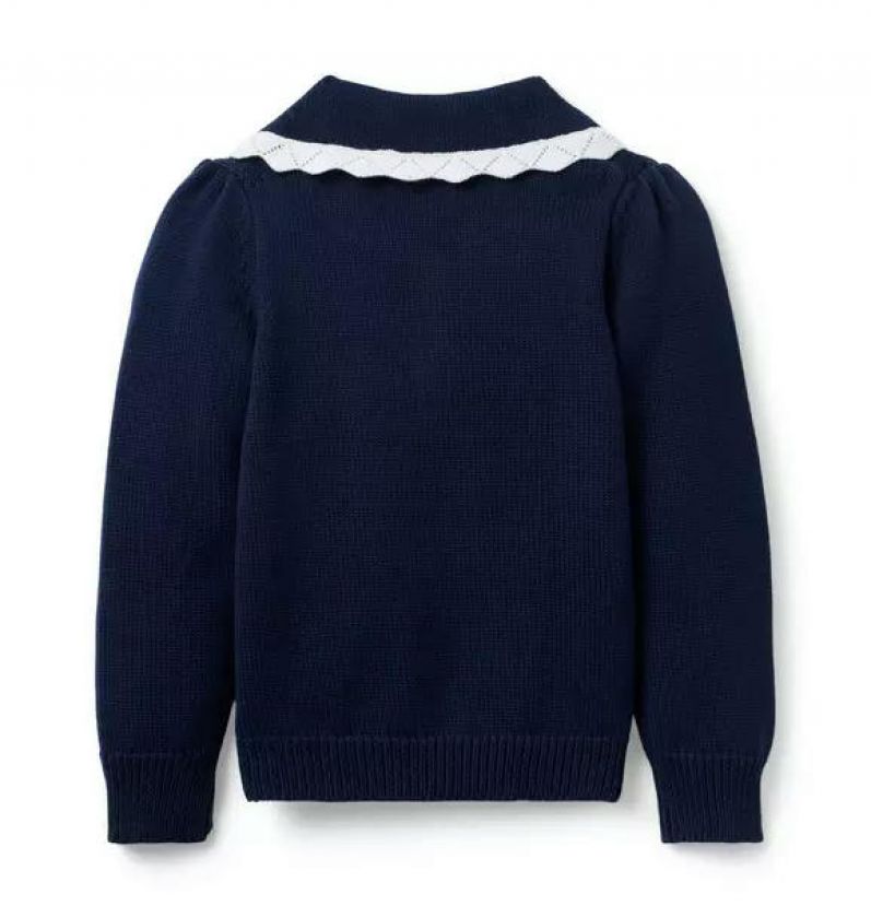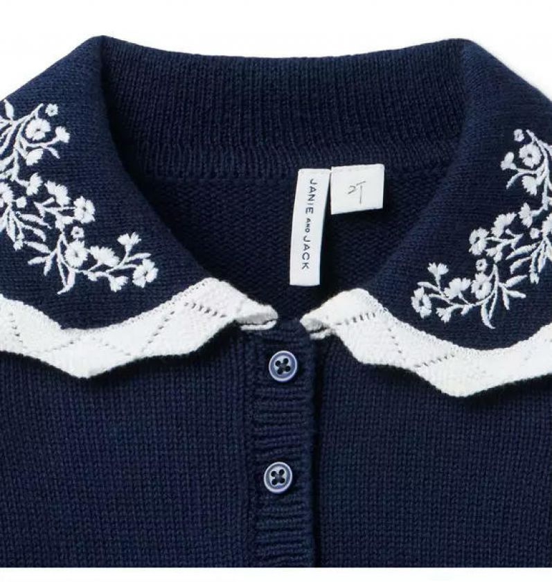 Embroidered Floral Collar Sweater