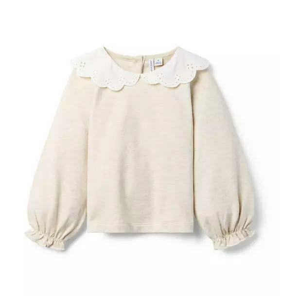 A cozy layer for crisp days, finished with a contrast eyelet collar. In soft French terry with ruffles at the cuffs for extra frills.