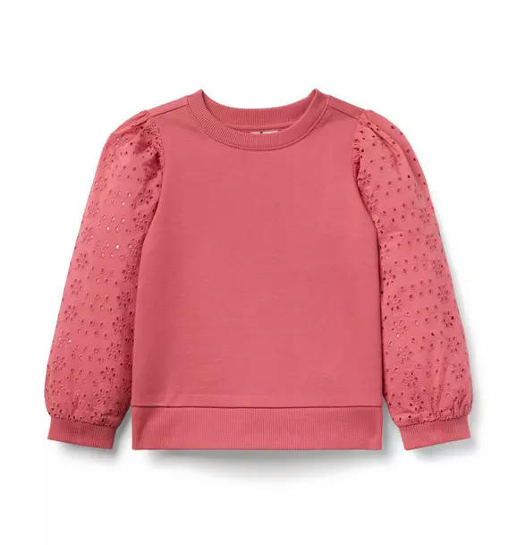 Their new favorite layer. Designed in pure cotton French terry, our puff sleeve sweatshirt features eye-catching eyelet sleeves and ribbed details.